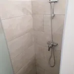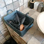 Zur Ausstattung des Badezimmers gehören auch eine getrennte Toilette und eine Dusche. Ein Haartrockner und Handtücher sorgen für zusätzlichen Komfort.